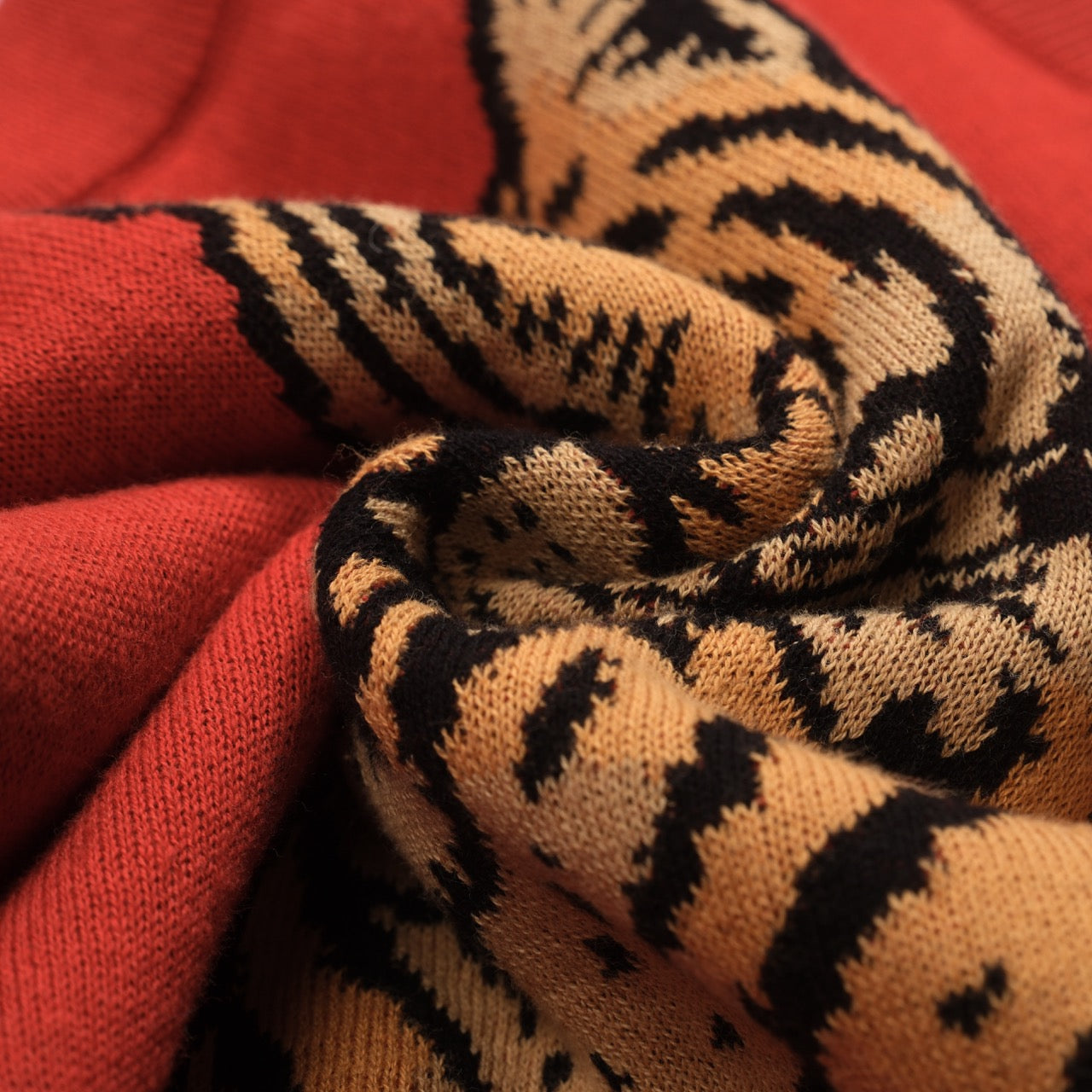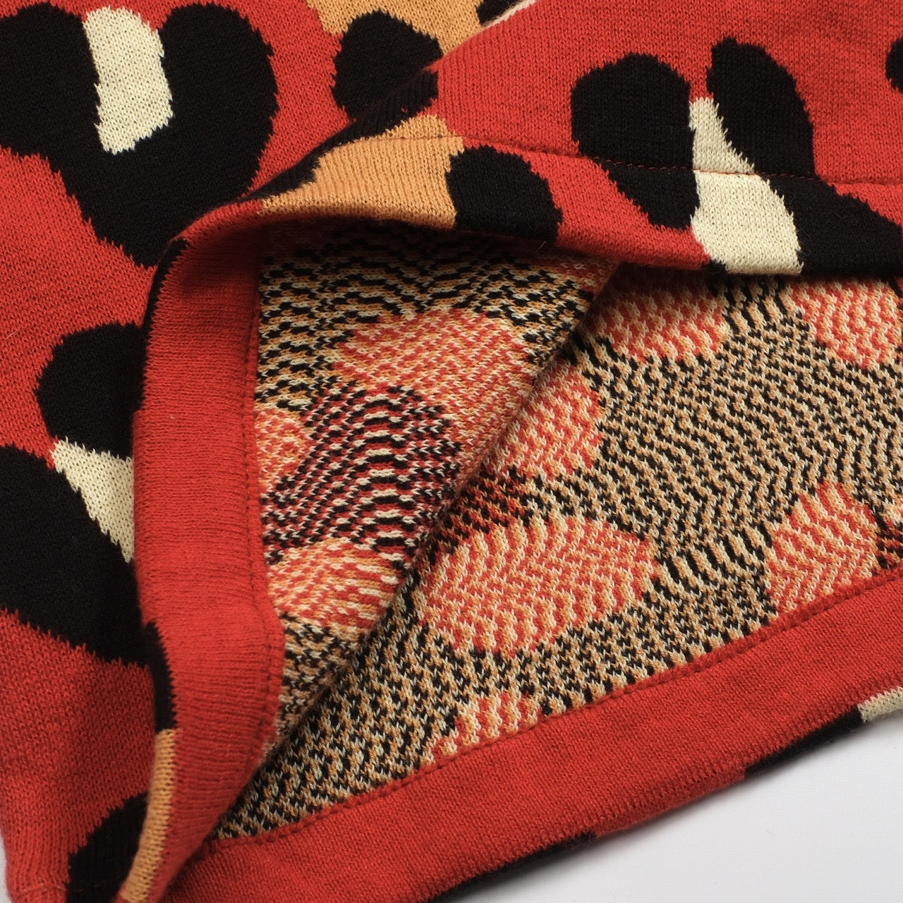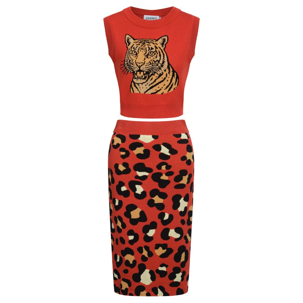 Women's red vintage tiger knit top and skirt set
