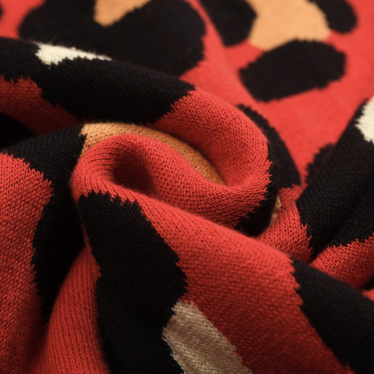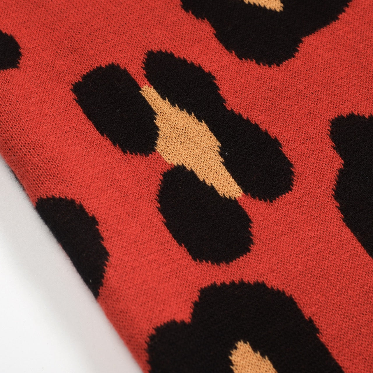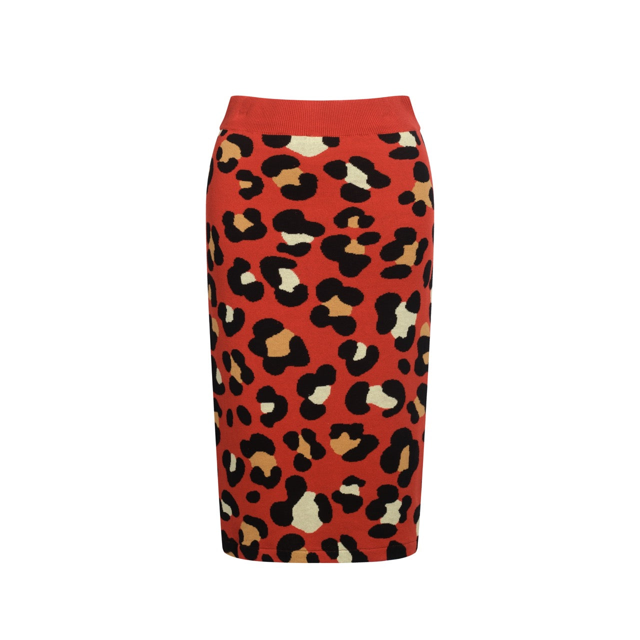 Women's red vintage tiger knit top and skirt set