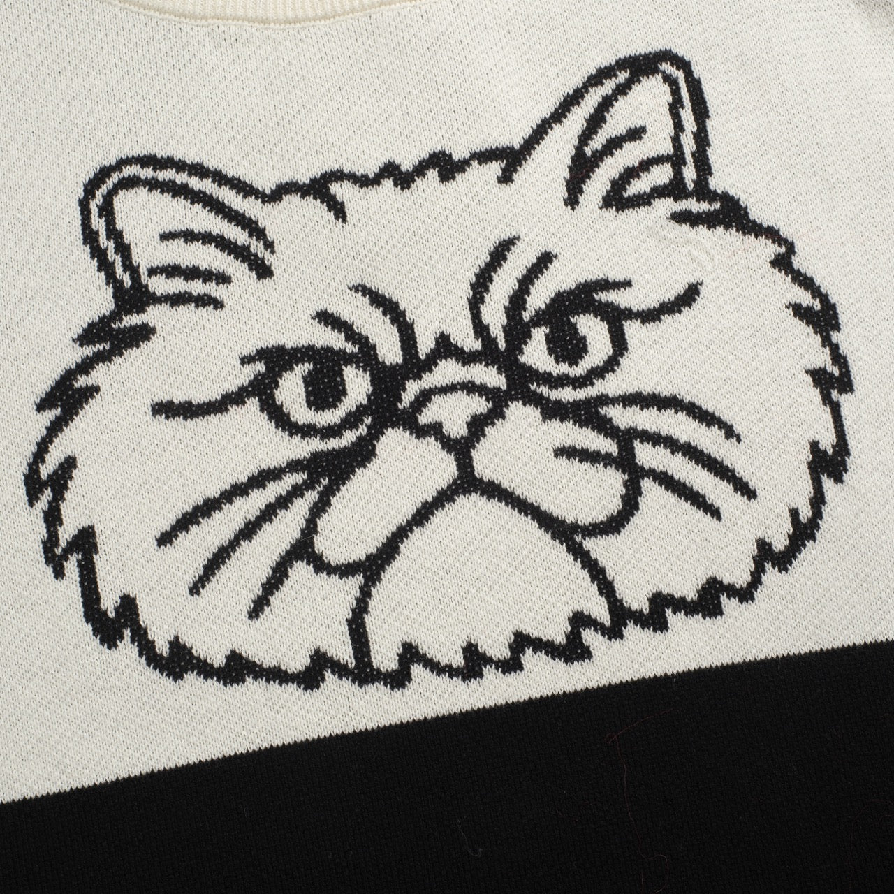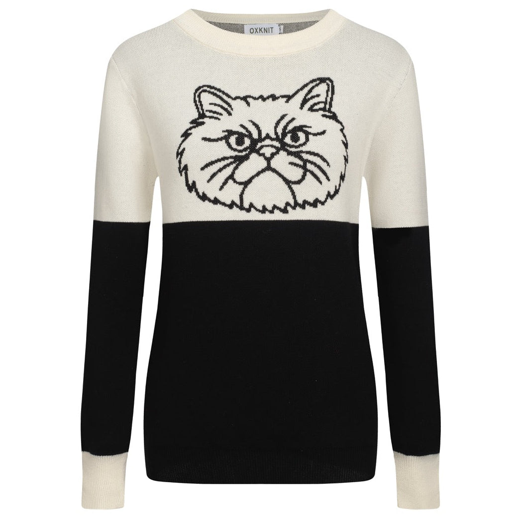 Women's black and white collage cat jacquard vintage knitwear