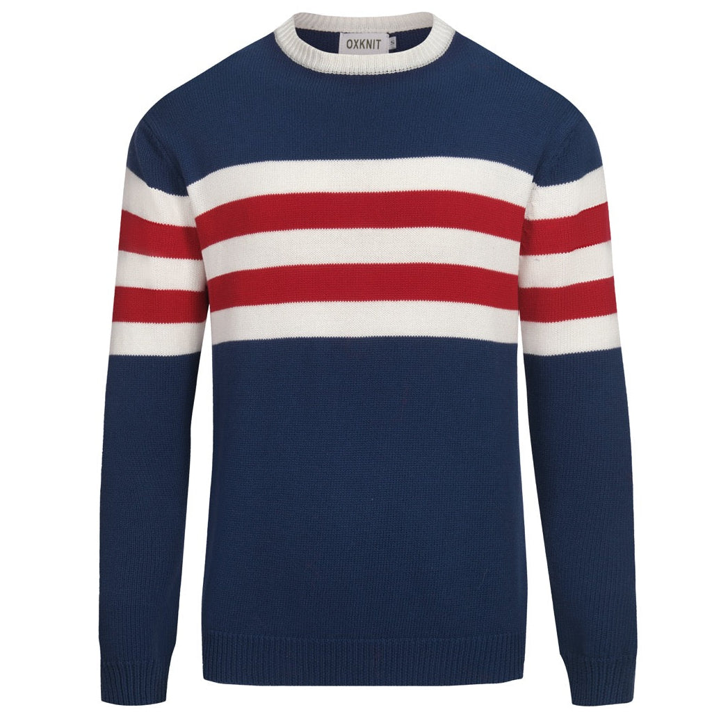 Men's dark blue vintage striped artistic fashion street jacquard knitwear