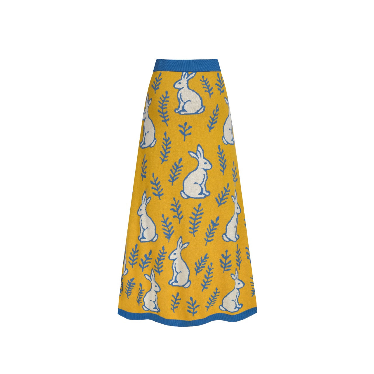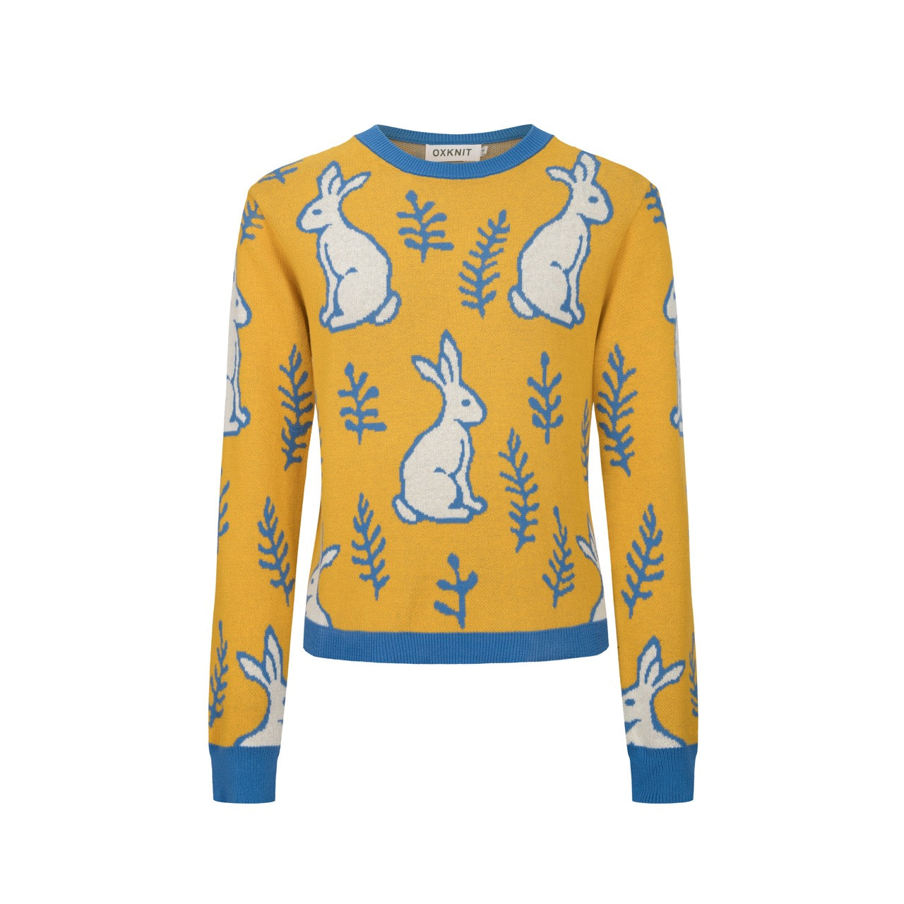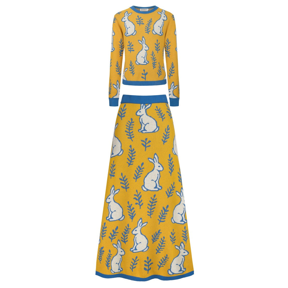 Kvinders gule kanin plante strikket kjole strikket sæt