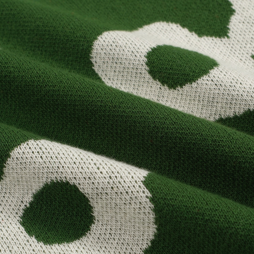 Βυθιστείτε στην ρετρό άνθηση με αυτό το πλεκτό πόλο εμπνευσμένο από τη δεκαετία του 1960 με oversized λευκά μοτίβα μαργαρίτας σε έντονο πράσινο. Σχεδιασμένο με πλήρες μπροστινό μέρος με κουμπιά, τελείωμα σε ιβουάρ χρώμα σε αντίθεση και δομημένο γιακά, αυτό το πουκάμισο συνδυάζει παιχνιδιάρικη επανάσταση και vintage γοητεία σε τέλεια αρμονία.