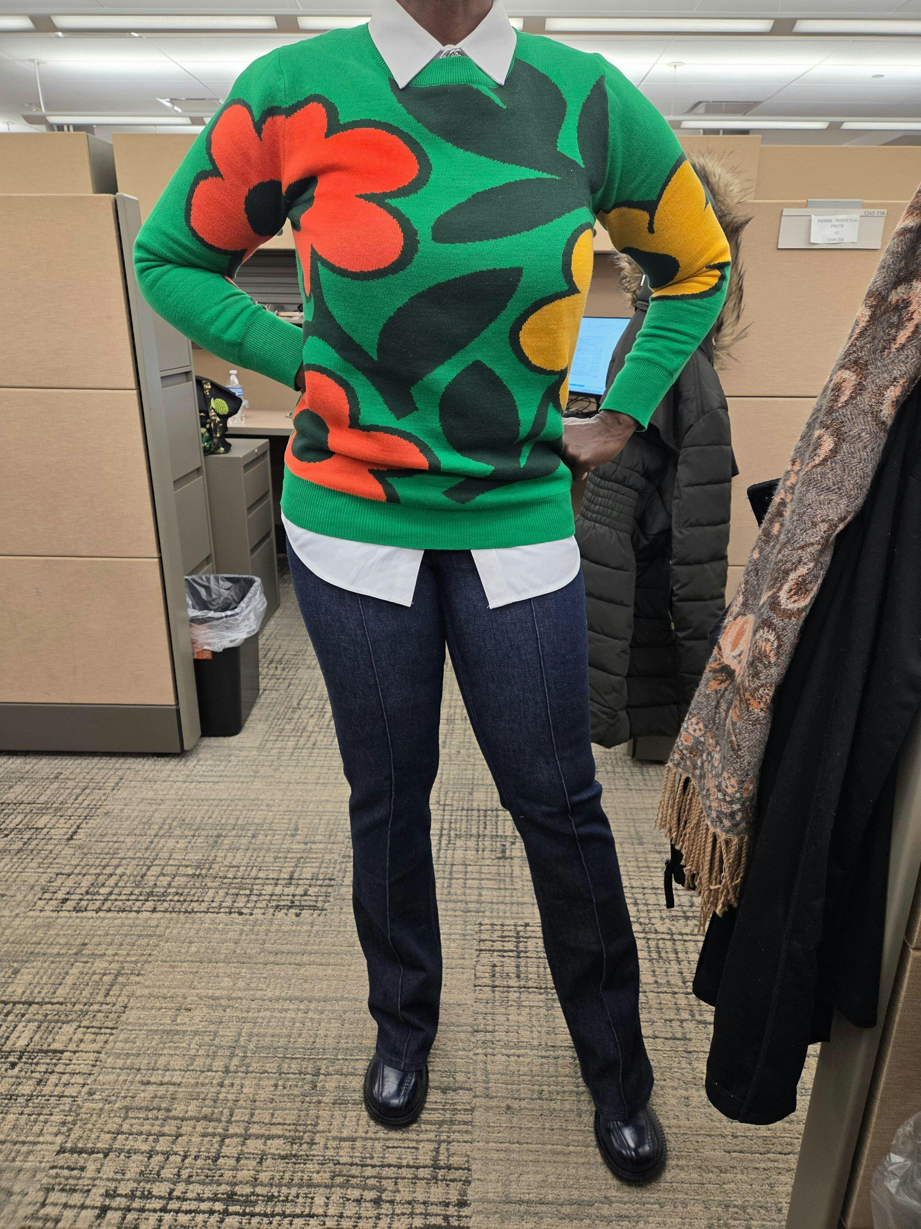 Love this sweater. It minimizes my huge boobs and fits really well.