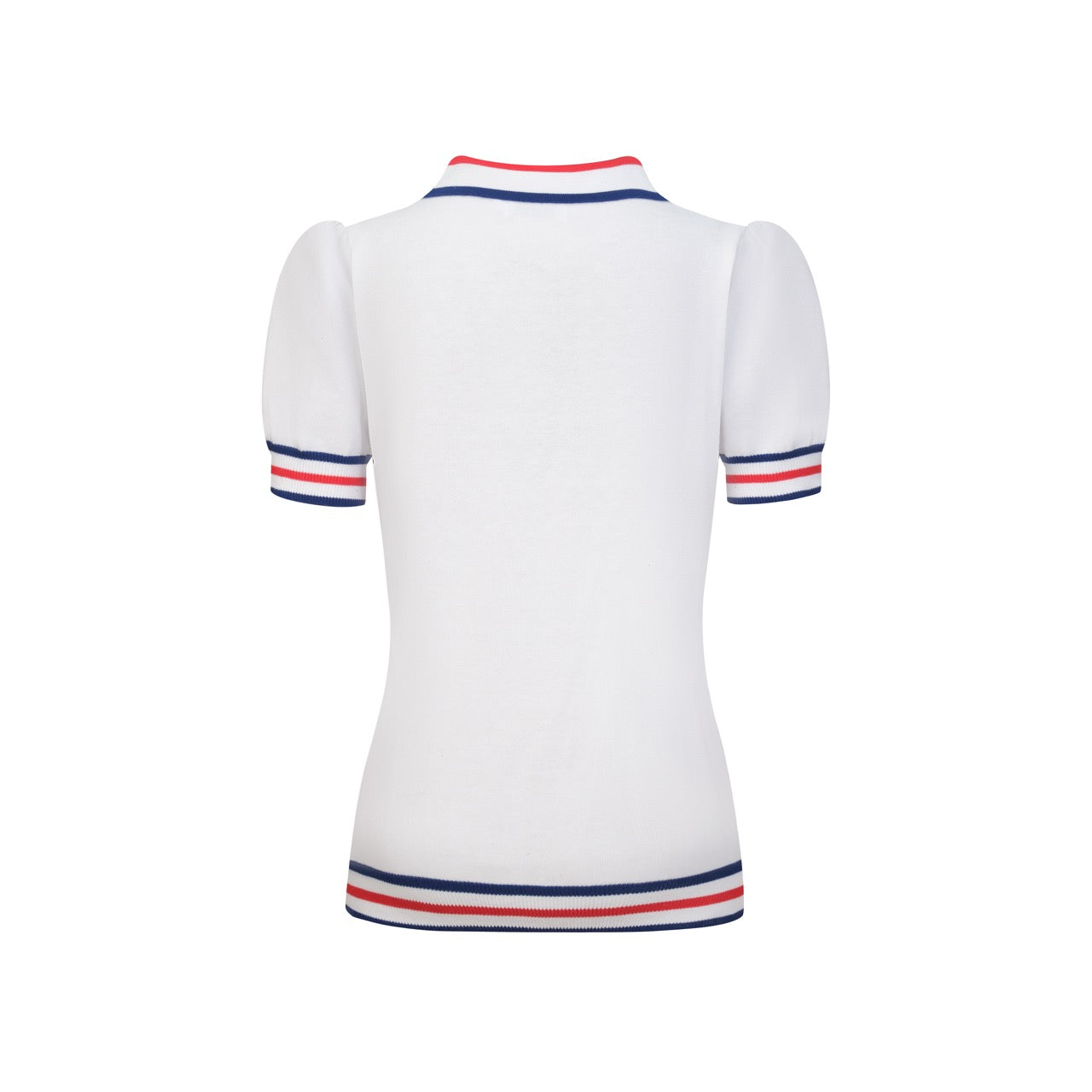 Polo de punto con manga abullonada y diseño de rayas color albaricoque blanco para mujer