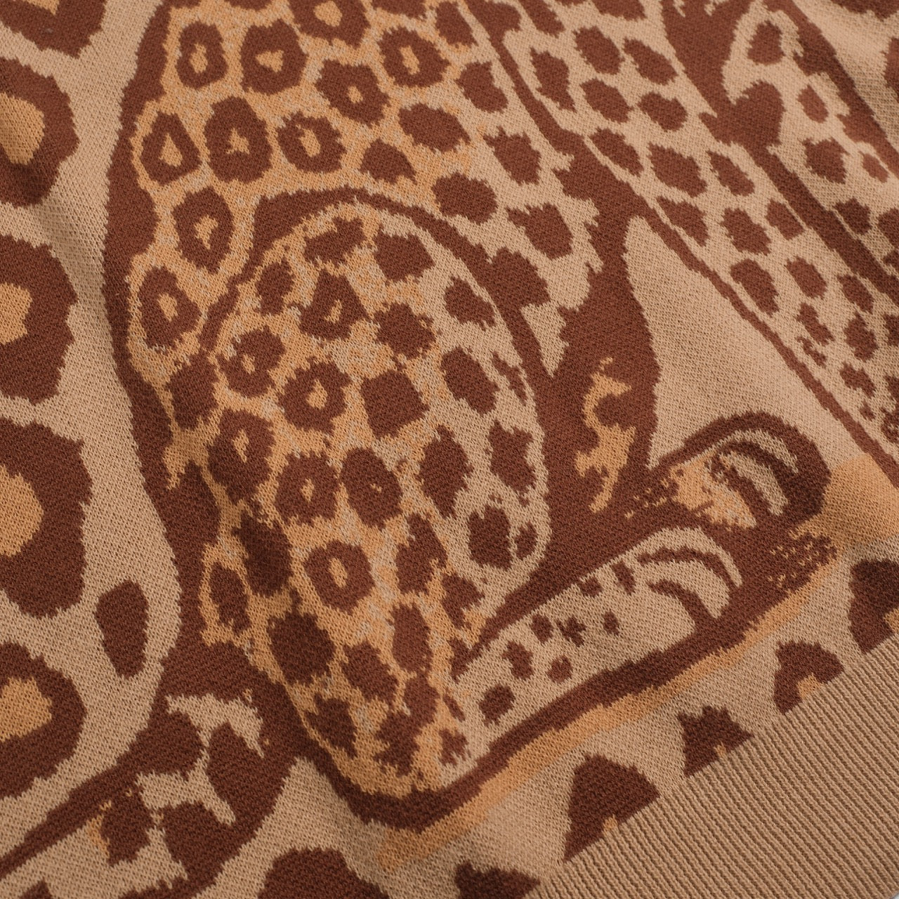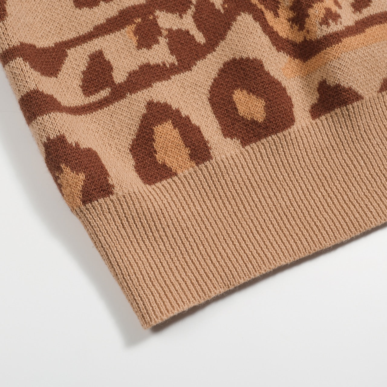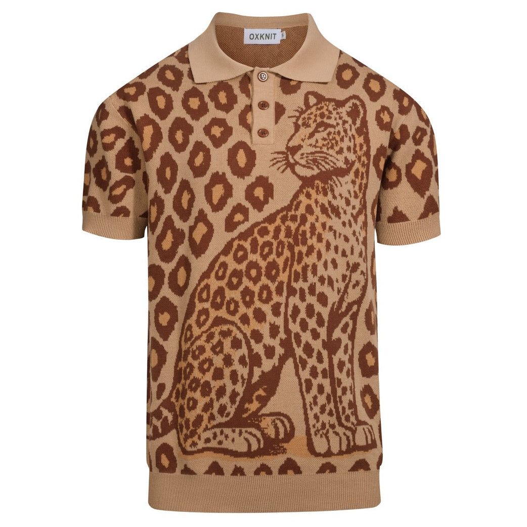 Polo de hombre de punto en jacquard con tigre y estampado de leopardo caqui