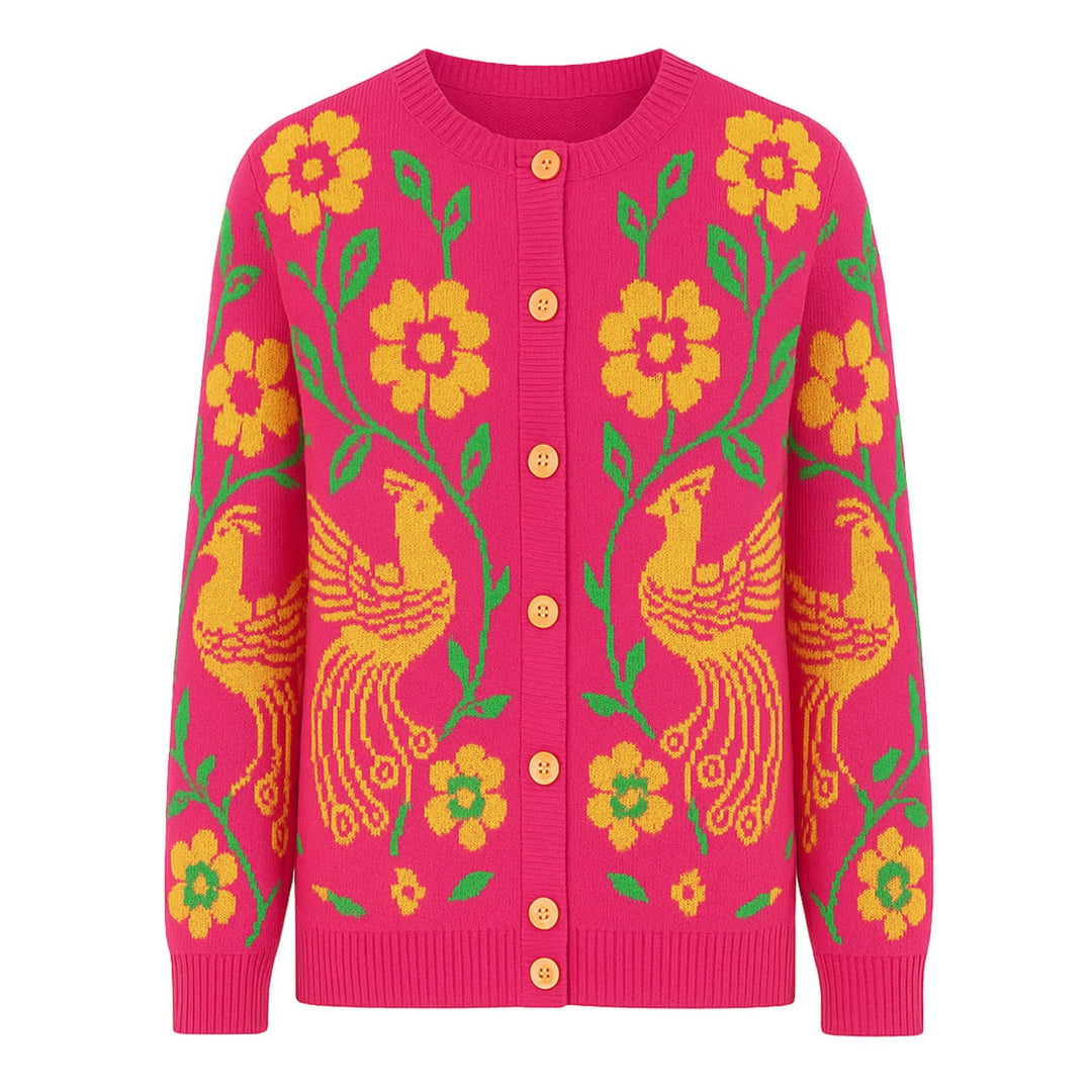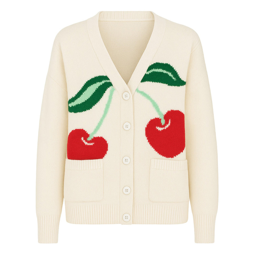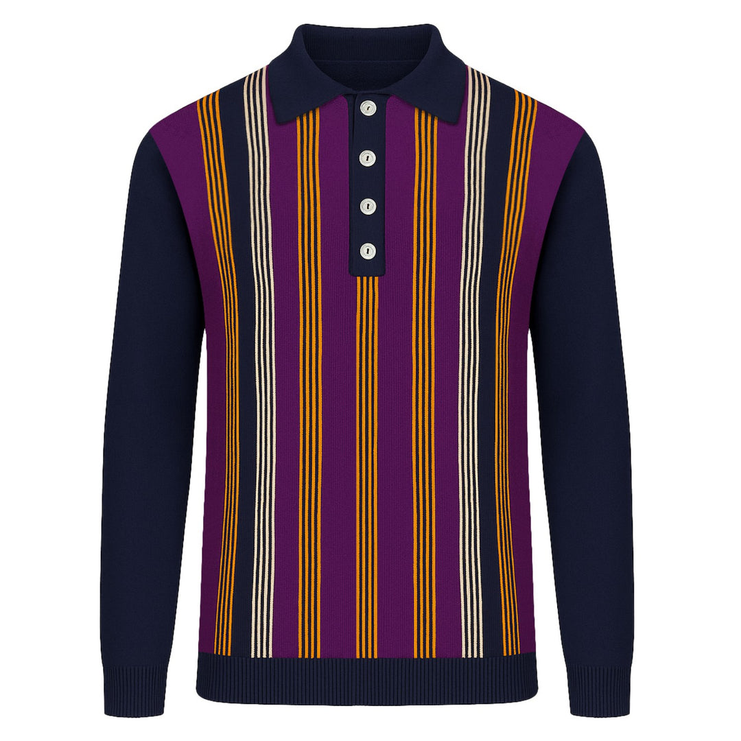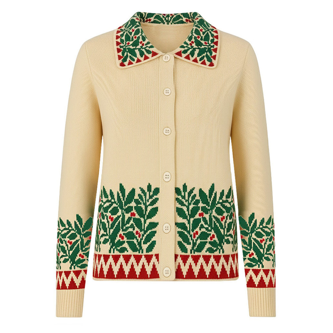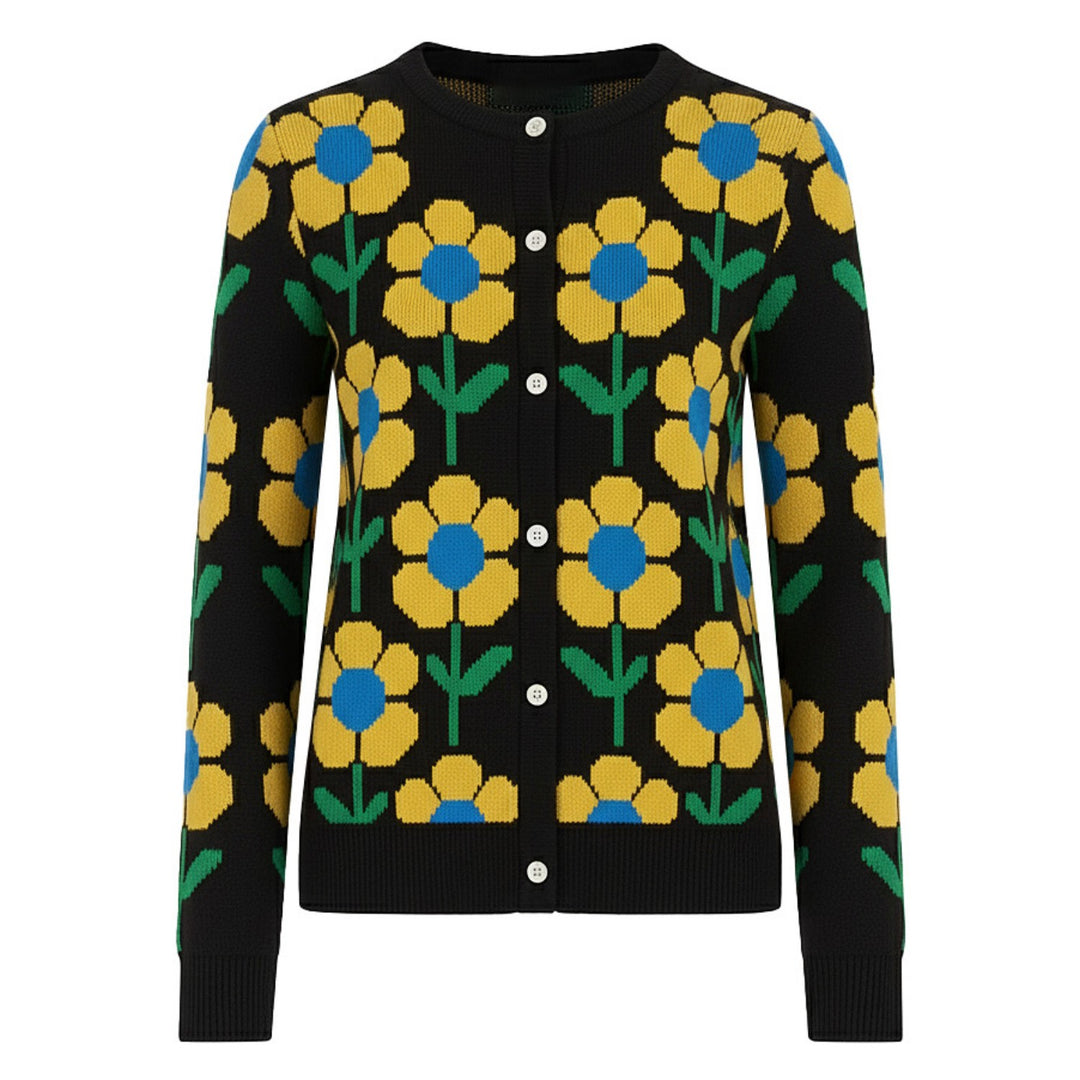 Women's yellow Cat vintage jacquard knit V-neck polo