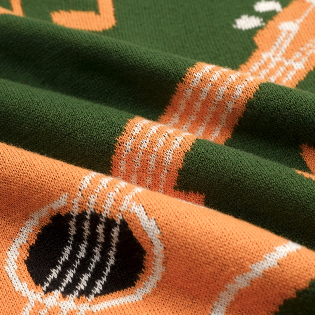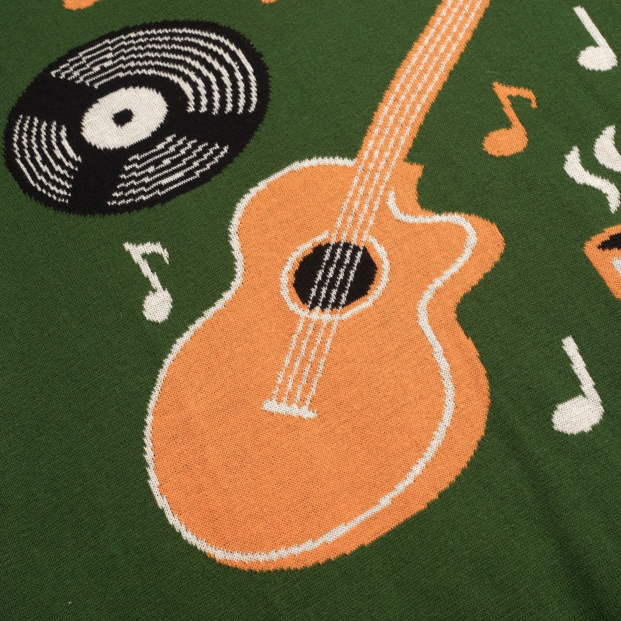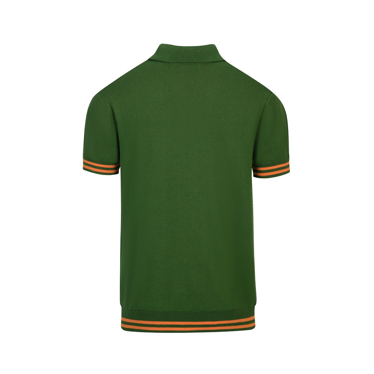 Polo manches courtes V-neck rétro guitare verte pour homme