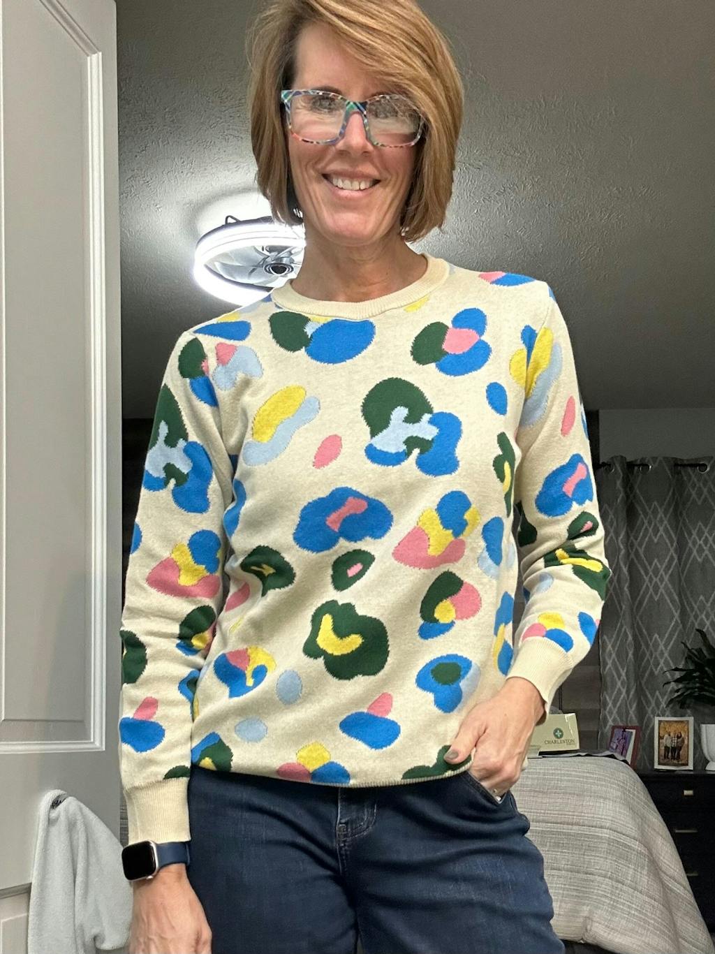 Maglieria da donna rosa pupazzo di neve natalizio a pois