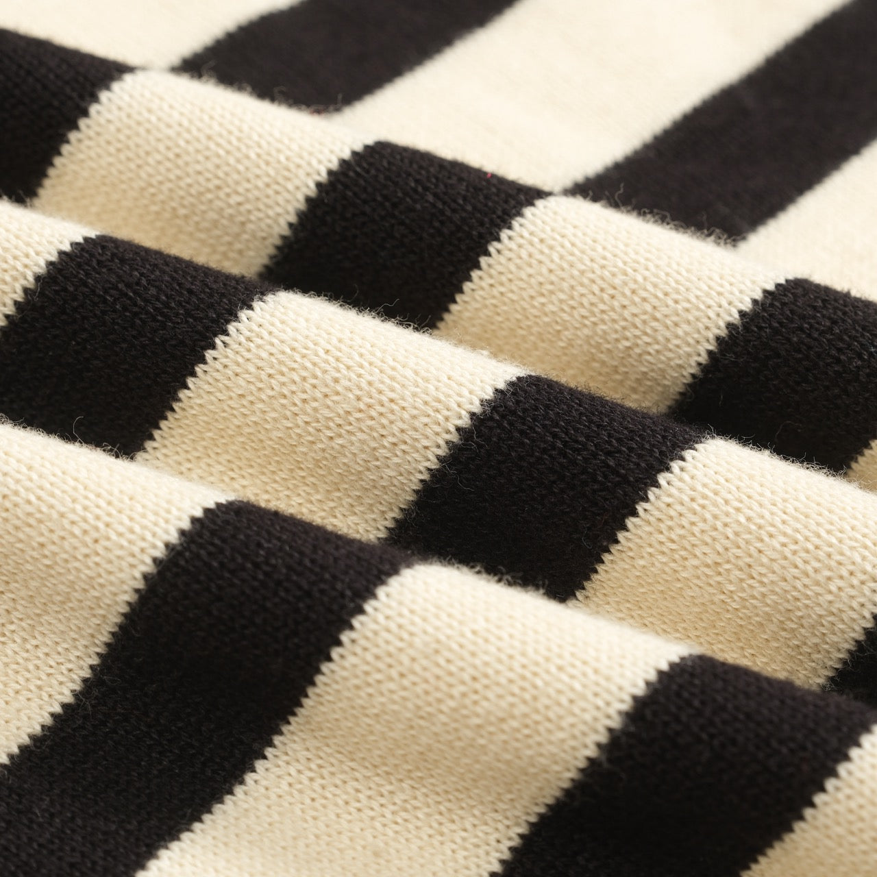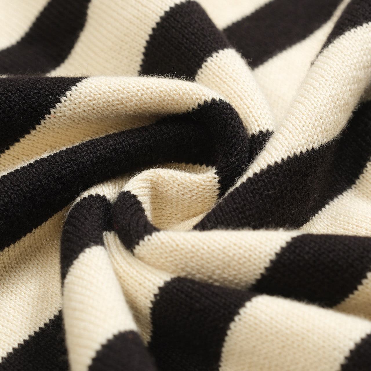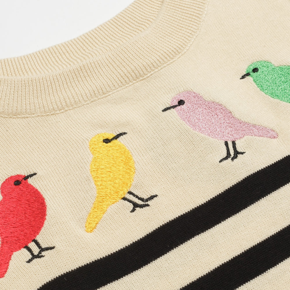 Maglieria da donna con uccellini ricamati a righe color albicocca