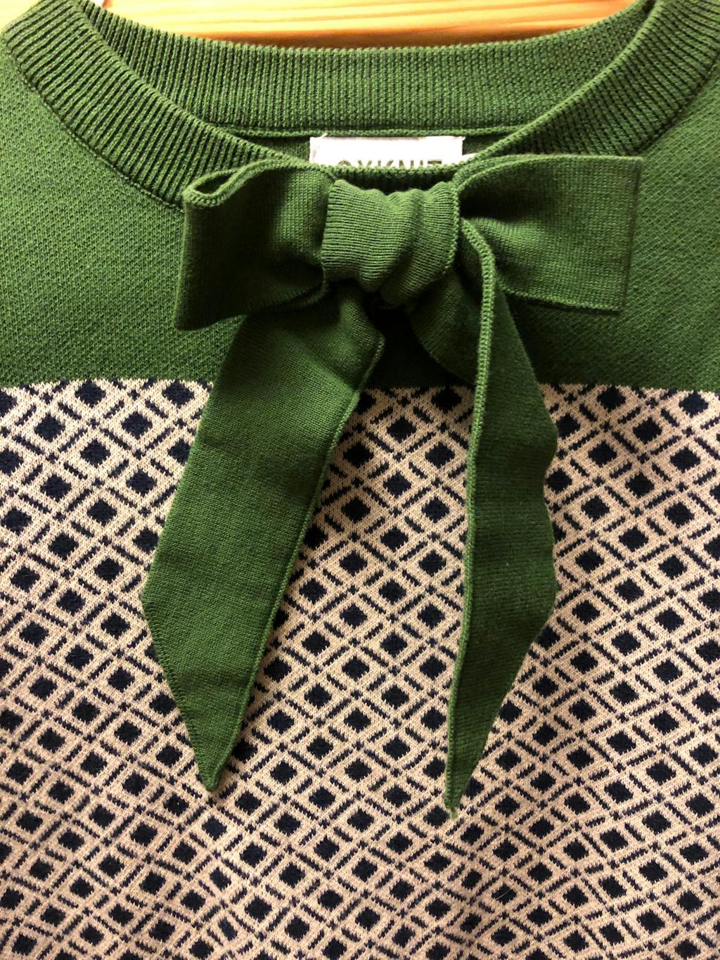 I really like this sweater, but I was a bit disappointed to find that the sweater came with a bow instead of a tie like the pictured. It’s not quite the same look of retro with a bow. Maybe a new marketing photo should be taken with the bow instead of a tie.