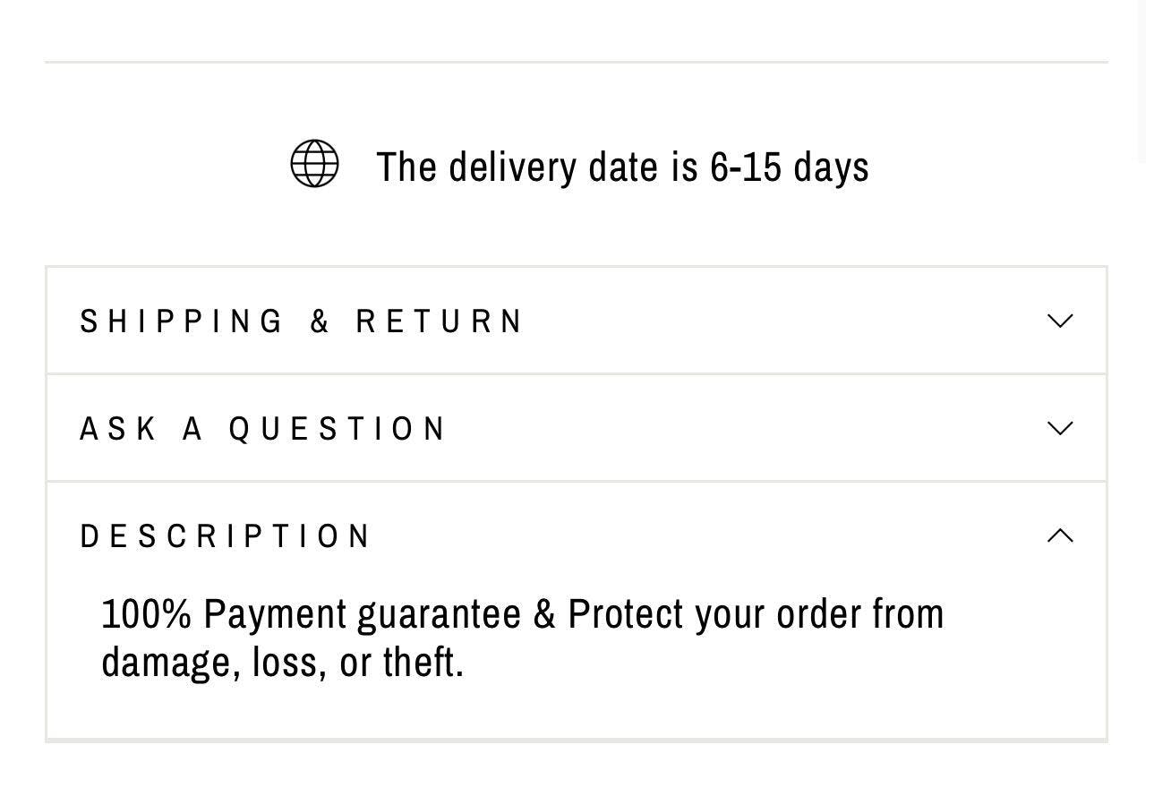 100% Payment guarantee & Protect your order from damage, loss, or theft.