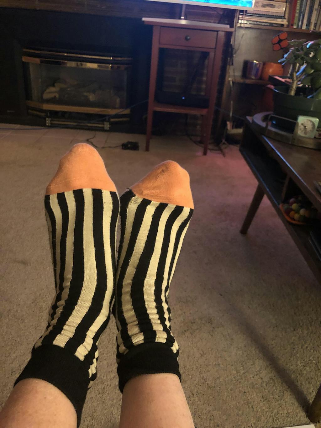 This is my favorite pair of socks ever. The design that is. The colors, the vertical stripe, the fun stroke of orange...I would wear them daily for all of time. BUT, as many others have reported, they fray and start to decline IMMEDIATELY after the first wash. They will never look crisp and clean again. And I cannot find this exact design any place else. Not even anything close. I'm furious.