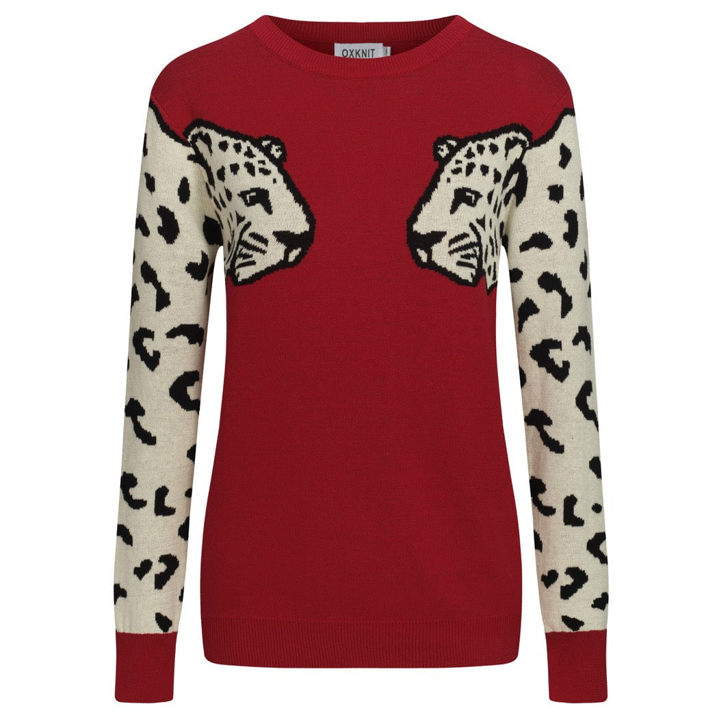Women's red vintage animal print crew neck knitwear