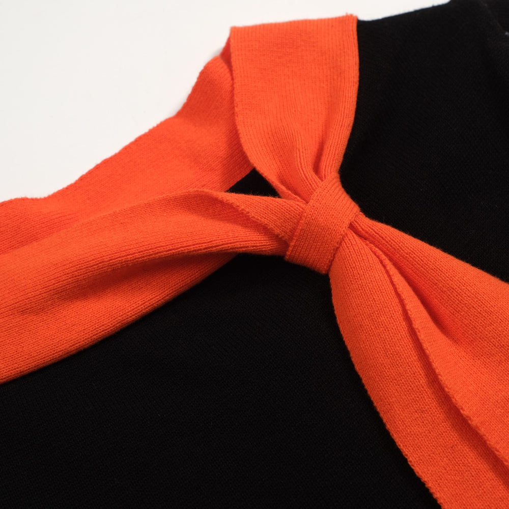 Black with orange neck tie and floral trim hem.