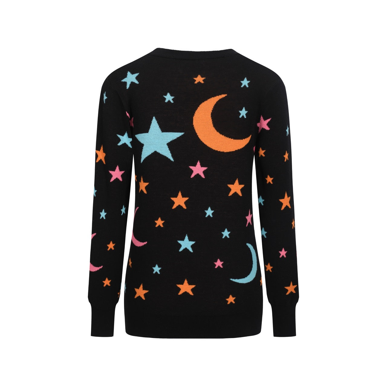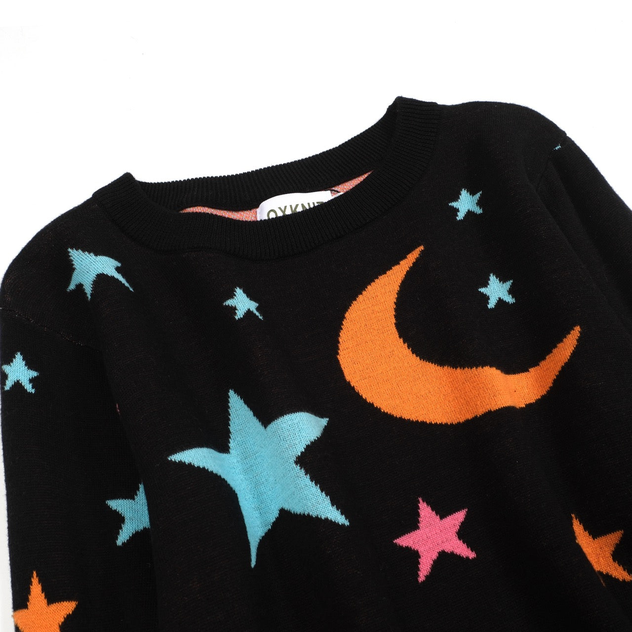 Kvinnors svart stjärna månen jacquard stickade plagg