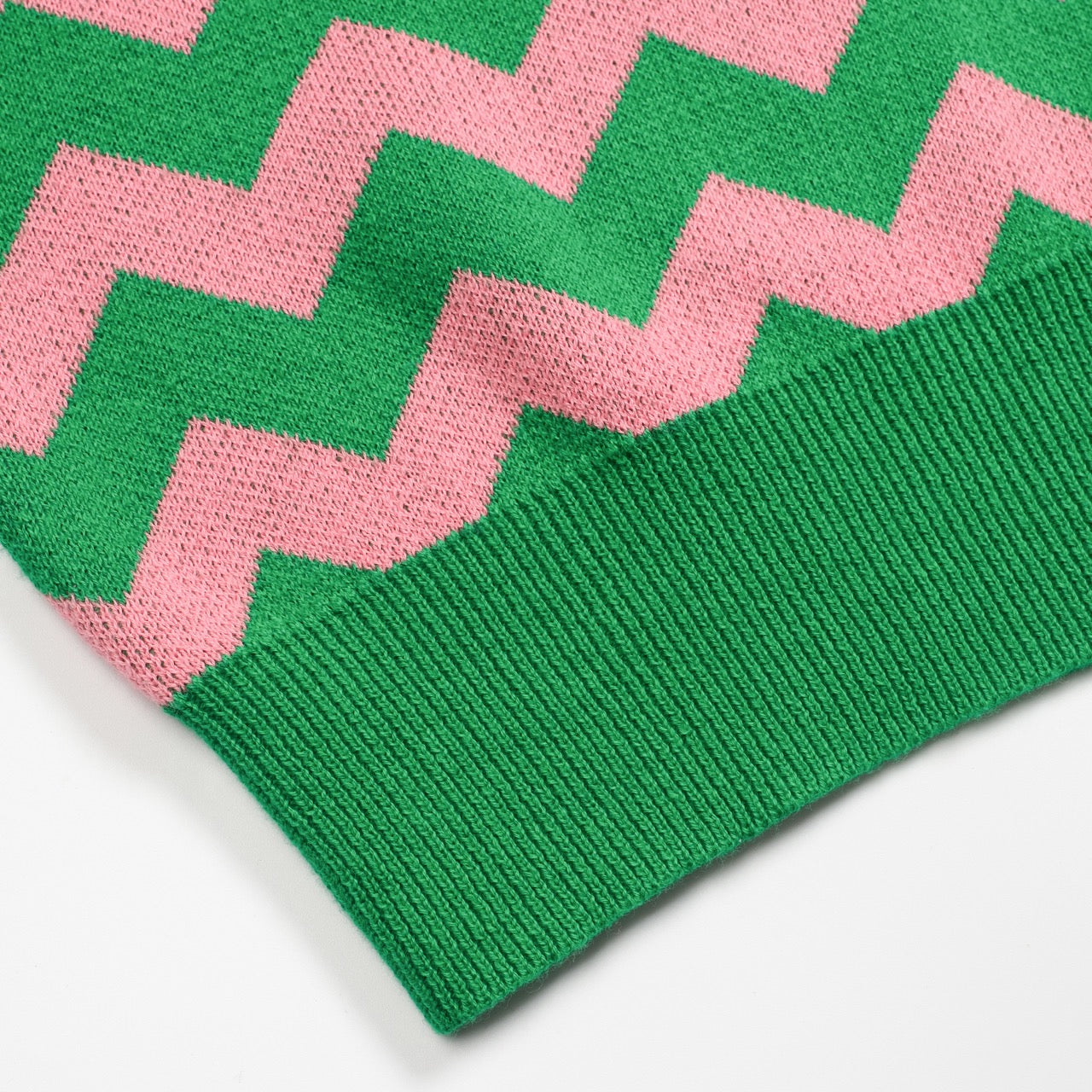 Grön tand randig ärm för kvinnor med V-ringad sticka