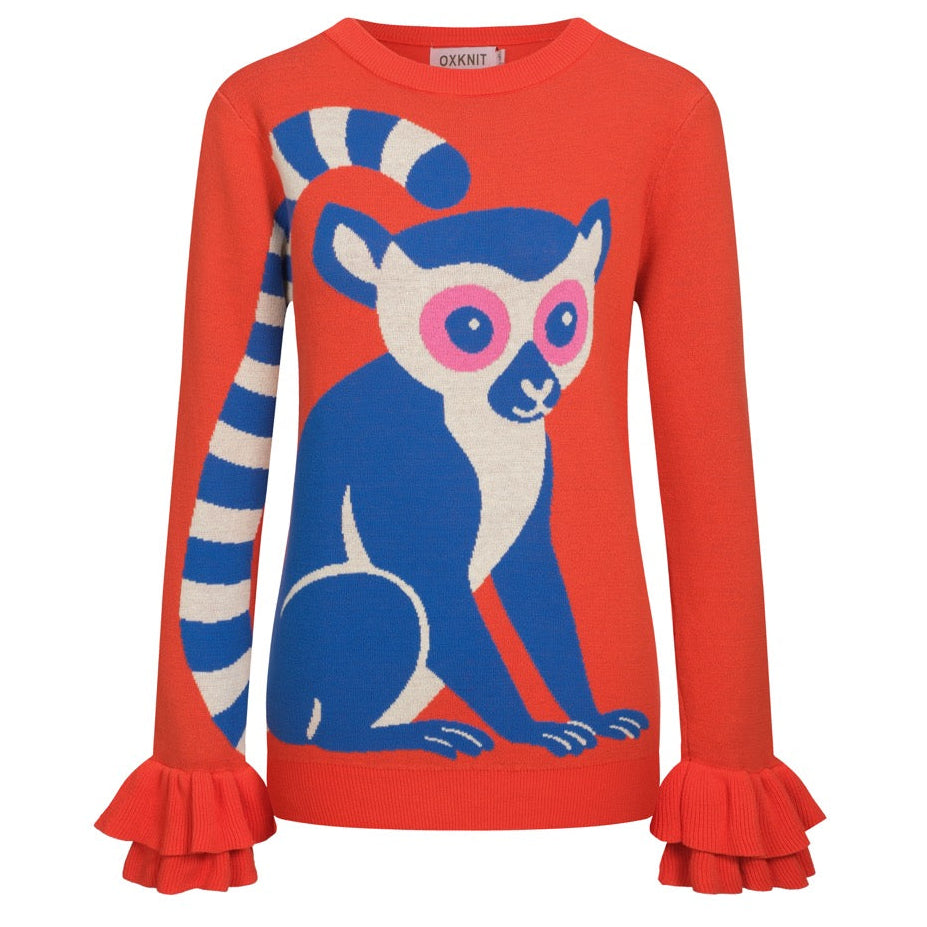 Kvinnors orange djurtryck volang designstickat-Lägg till långa ärmar
