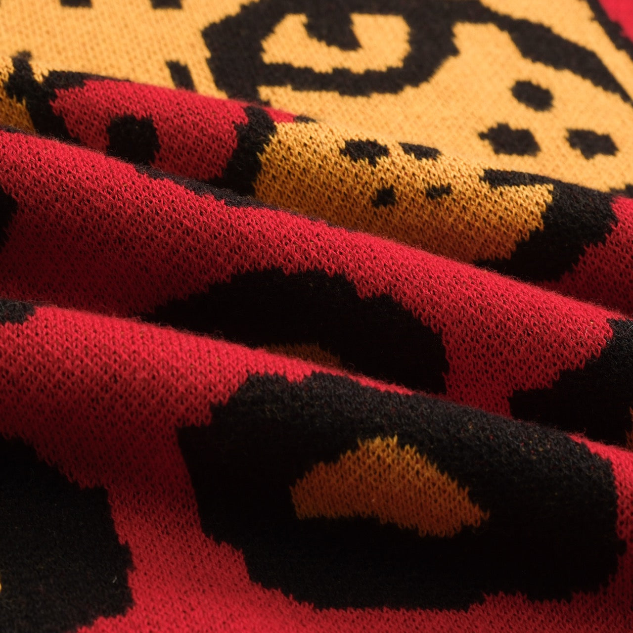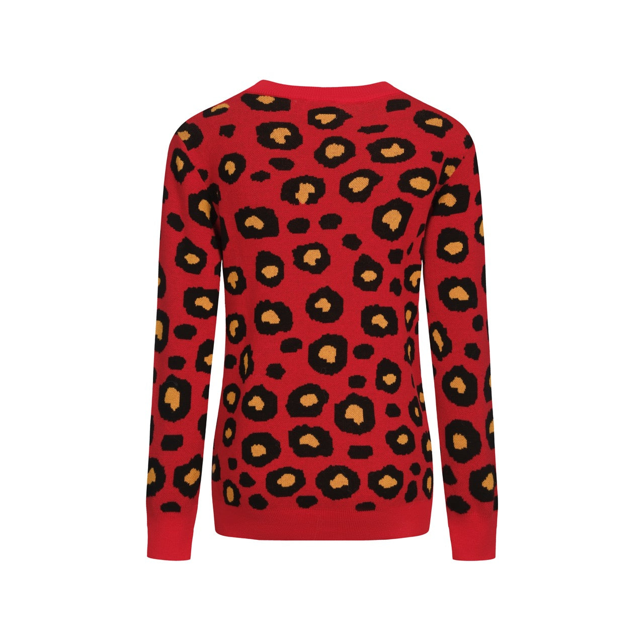 Rött leopardmönstrat retro stickat plagg för kvinnor